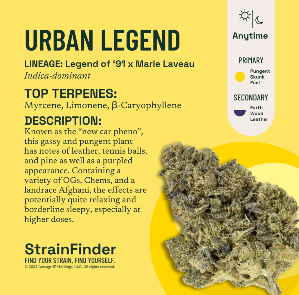 Known as the “new car pheno”, this gassy and pungent plant has notes of leather, tennis balls, and pine as well as a purpled appearance. Containing a variety of OGs, Chems, and a landrace Afghani, the effects are potentially quite relaxing and borderline sleepy, especially at higher doses.